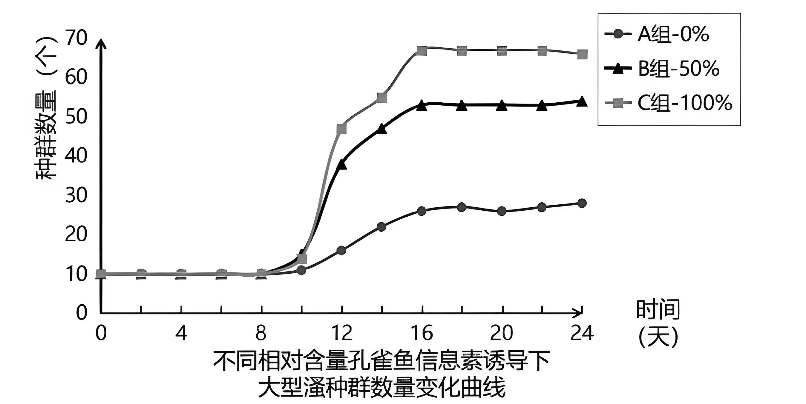 9、水生生态系统中被捕食者的活动和繁殖等行为常常受捕食者释放的信息素(传递信息的化合物)的影响。已知大型溞为湖泊、水库中常见的水生植食性浮游动物,发育成熟后可通过孤雌产卵繁殖,而孔雀鱼能以大型溞为食。研究人员以孔雀鱼制得信息素提取液,以大型溞新生个体为研究对象,调查不同含量的孔雀鱼信息素对大型溞种群数量的影响,结果如图,据此分析:(1)、大型溞与浮游植物的种间关系为。(2)、调查结果显示,大型溞的种群数量变化类型为。在前8天的调查数据中,大型溞的种群数量基本不变,从发育规律的角度分析,原因可能是。(3)、实验的第9天开始,三个组的数据开始出现差异,这说明孔雀鱼信息素可提高和 , 从而促进大型溞的种群增长。(4)、已知捕食者的信息素相对含量一般与其种群密度呈正相关。试结合实验结果,从生物的适应角度分析,被捕食者通过对信息素的应激来调整种群数量有何意义。