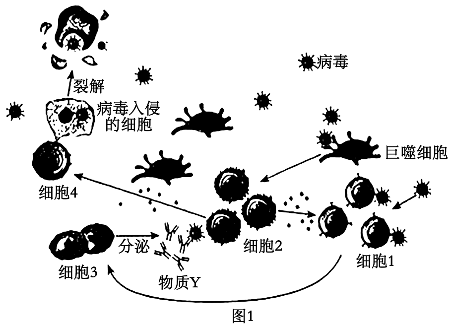 (1)、细胞1的激活需要两个信号,其中第二个信号为