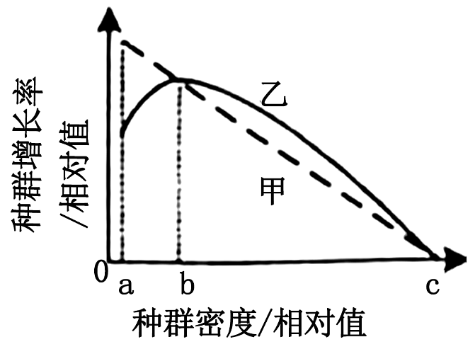 • 3、种群增长率等于出生率减死亡率。不同物种的甲、乙种群在一段时间内的增长率与种群密度的关系如图所示。已知随时间推移种群密度逐渐增加,a为种群延续所需的最小种群数量所对应的种群密度;甲、乙中有一个种群个体间存在共同抵御天敌等种内互助。下列说法正确的是(       )