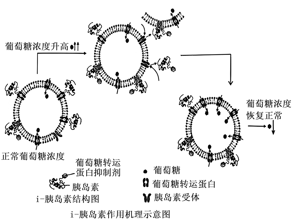 (3)、1型糖尿病患者进餐前,需注射胰岛素以控制血糖,如何有效降低因胰岛素剂量偏差导致的低血糖风险一直是血糖管理的难点。某团队研发了一款名为“i一胰岛素”的新型胰岛素,注入体内后可与细胞结合,对血糖进行智能调控,其作用机理如下图所示。