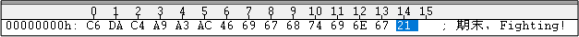18、使用UltraEdit 软件观察字符串“期末,Fighting!”的内码,部分界面如下图所示,