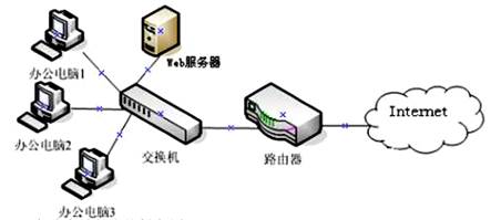 19、某公司为了加强内部网络的安全,防止资料被窃取,购买了一款硬件防火墙。公司内部网络的拓扑图如下,请问防火墙应该放置在( )A、办公电脑与交换机之间 B、交换机与路由器之间 C、路由器与Internet之间 D、Web服务器与交换机之间