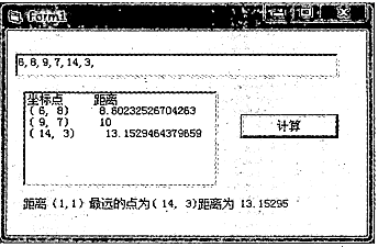 Label1.Caption="距离(1, 1)最远的点为"& pos &"距离为"& Str(maxd)