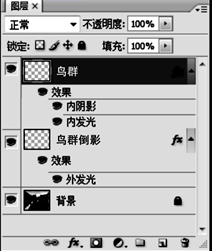 15、小英创作主题为“小镇故事”的多媒体作品。她使用Photoshop软件制作一张背景图片,请回答下列问题:(1)、小英想通过“画布大小”命令将画布由600*400改为600*338,若按此调整,则图像将被(填字母:A .缩小/B .放大/C .裁剪)。(2)、当前的图层面板如图所示,若在“鸟群”图层上执行“拷贝图层样式”命令,再在“鸟群倒影”图层上执行“粘贴图层样式”命令,则“鸟群倒影”图层上的图层样式有 (填图层样式名称)。(3)、选中背景图层,执行滤镜-模糊-高斯模糊,这个操作执行。(能 / 不能)(4)、小英完成了设计后,为了便于以后修改,她应该把作品保存为格式。