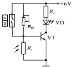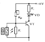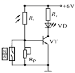 6、学了电子控制技术后,小杨和小明打算在各自的家门上安装门控夜明灯电路,实现光线暗时打开门,灯自动点亮,光线亮时,即使门打开,灯也不会亮。小杨用三极管电路来实现以上功能,以下电路恰当的是( )A、