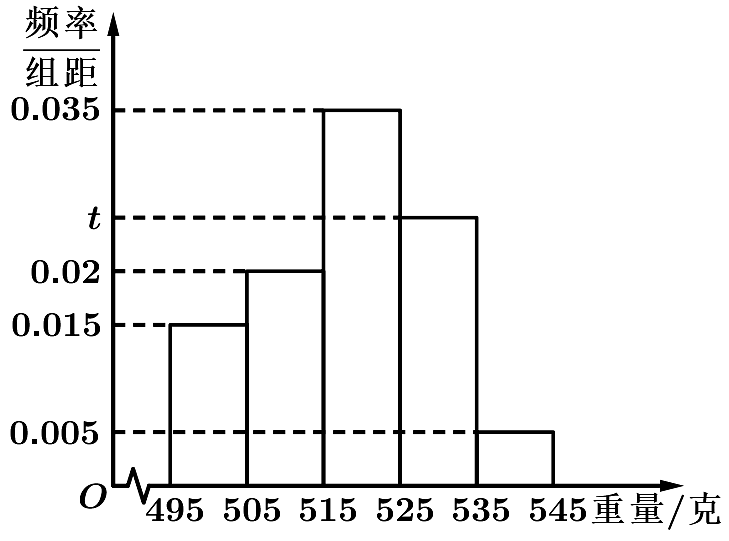 18、某机械零件工厂为了检验产品的质量,质检部门随机在生产线上抽取了个零件并称出它们的重量(单位:克).重量按照 , , …,分组,得到频率分布直方图如图所示.