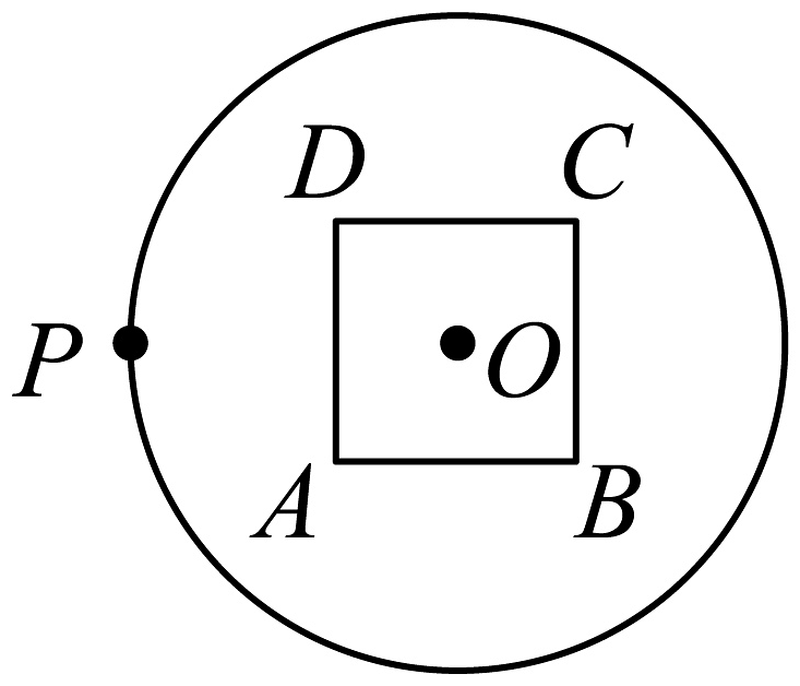 13、铜钱,古代铜质辅币,指秦汉以后的各类方孔圆钱,其形状如图所示.若图中正方形的边长为2,圆的半径为3,正方形的中心与圆的圆心重合,动点在圆上,则的最小值为( )A、1 B、3 C、2 D、4