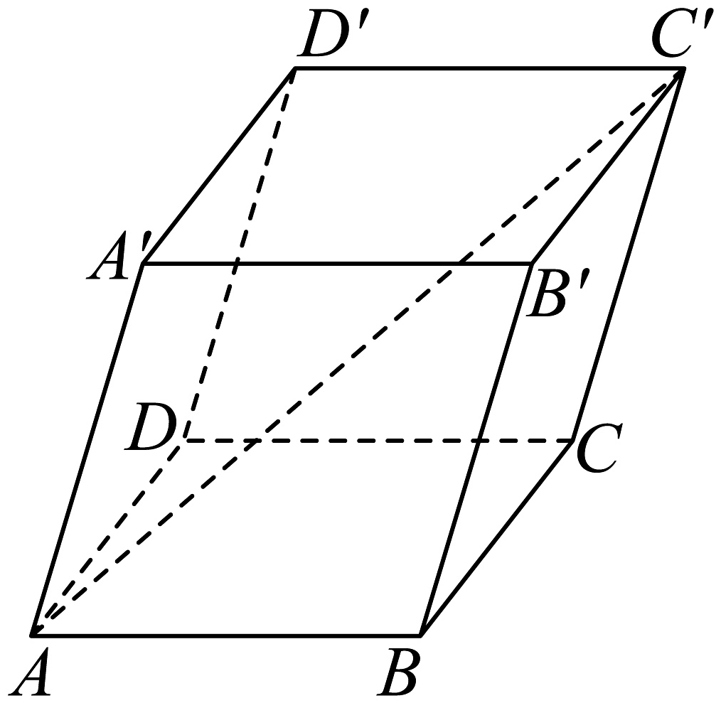 2、如图,在平行六面体中, , , 则的长为( )A、 B、 C、 D、