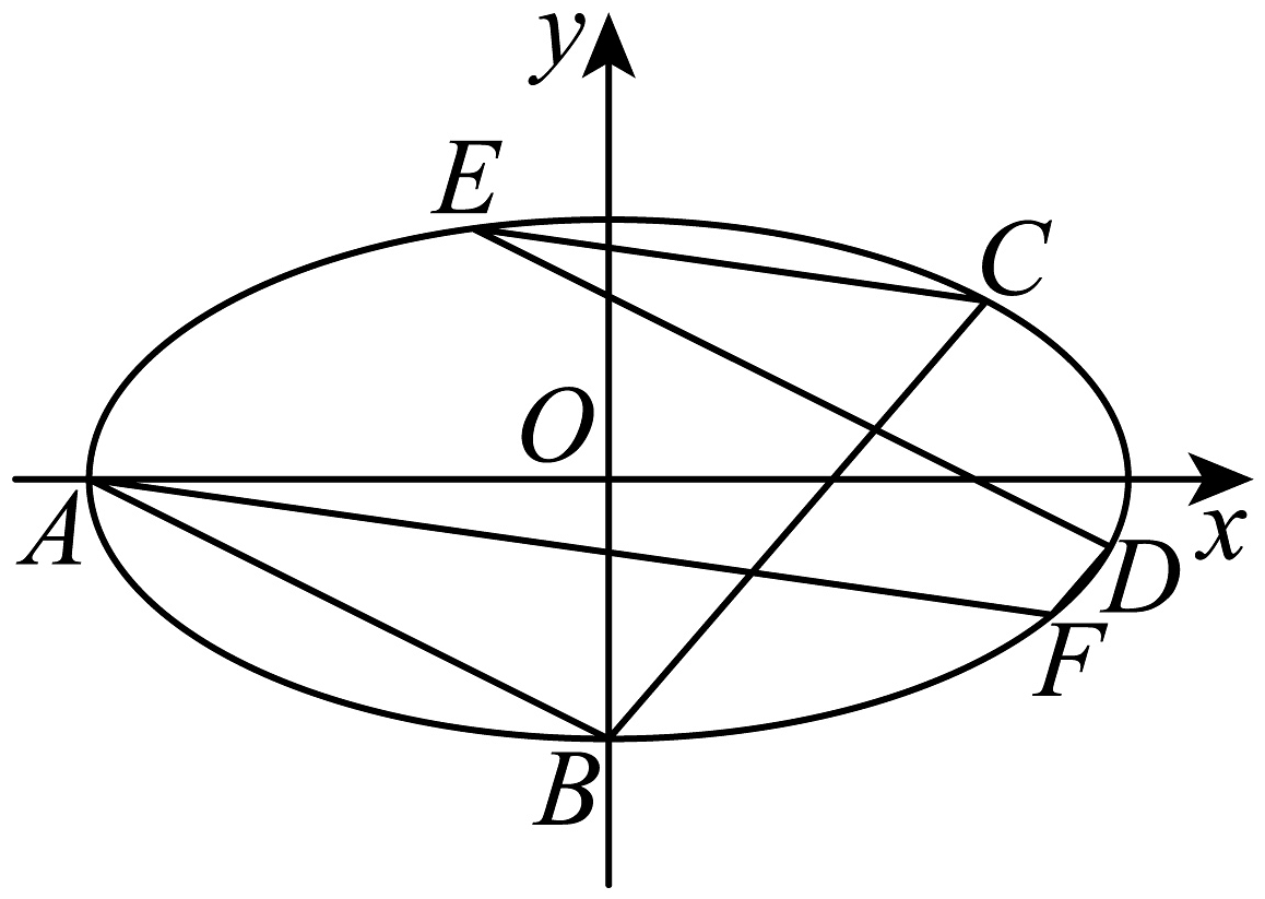 16、已知椭圆的左顶点为 , 下顶点为 . 且过点 .(1)、求点的坐标;(2)、若直线上存在一点P,上存在一点Q,使是以A为直角顶点的等腰直角三角形,求实数m的取值范围;(3)、若椭圆上的三个动点D,E,F满足 , 证明: .