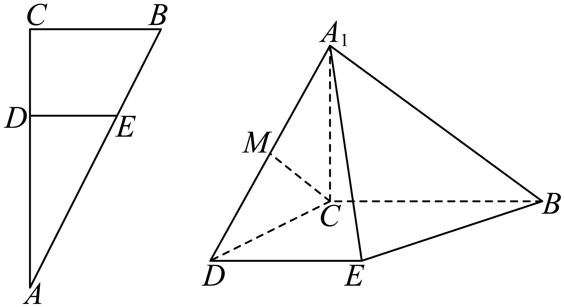 1、在中, , , , 分别是上的点,满足且经过的重心,将沿折起到的位置,使 , 是的中点,如图所示.(1)、求证:平面;(2)、求与平面所成角的大小;(3)、在线段上是否存在点 , 使平面与平面成角余弦值为?若存在,求出的长度;若不存在,请说明理由.