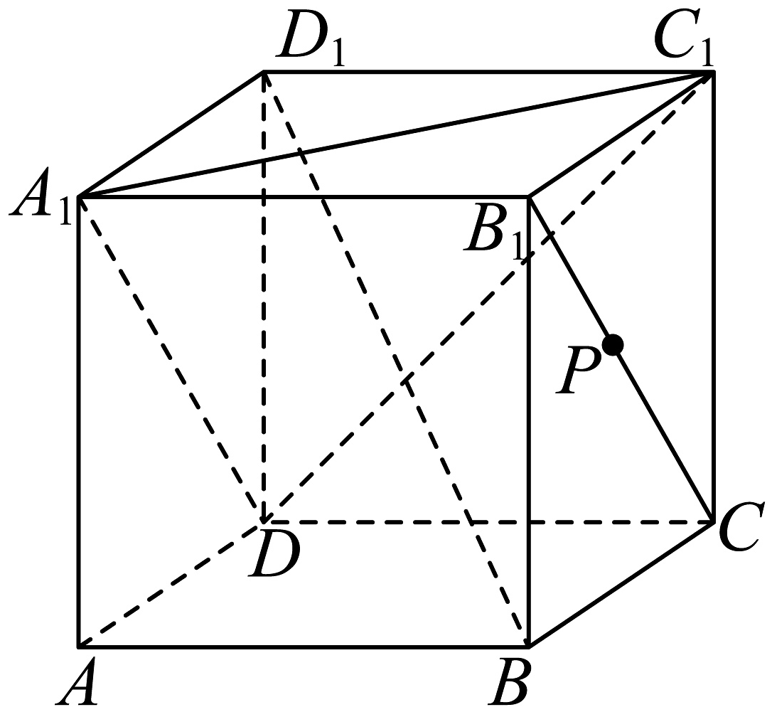 8、如图,在正方体中,点在线段上运动,则下列结论正确的是( )A、三棱锥的体积为定值 B、异面直线与所成角的取值范围是 C、平面与平面所成夹角的余弦值取值范围是 D、直线与平面所成角的正弦值的最大值为