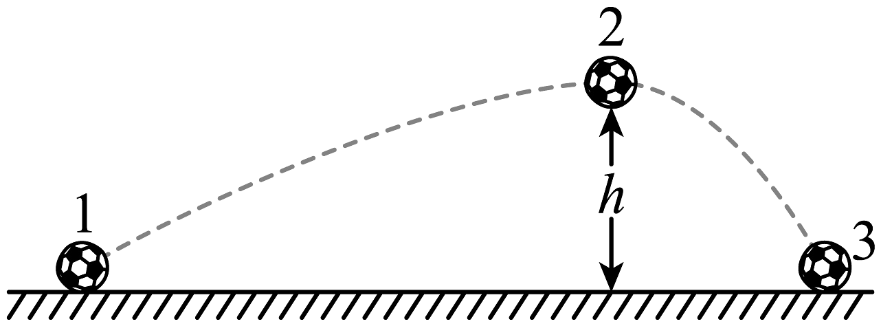 4、如图所示,质量为m的足球在地面1的位置被踢出后落到地面3的位置,在空中到达最高点2的高度为h。重力加速度为g,则( )A、由位置1到位置2重力做功mgh B、由位置2到位置3重力做功 C、由位置1到位置3重力做功 D、由位置1到位置3重力做功为零