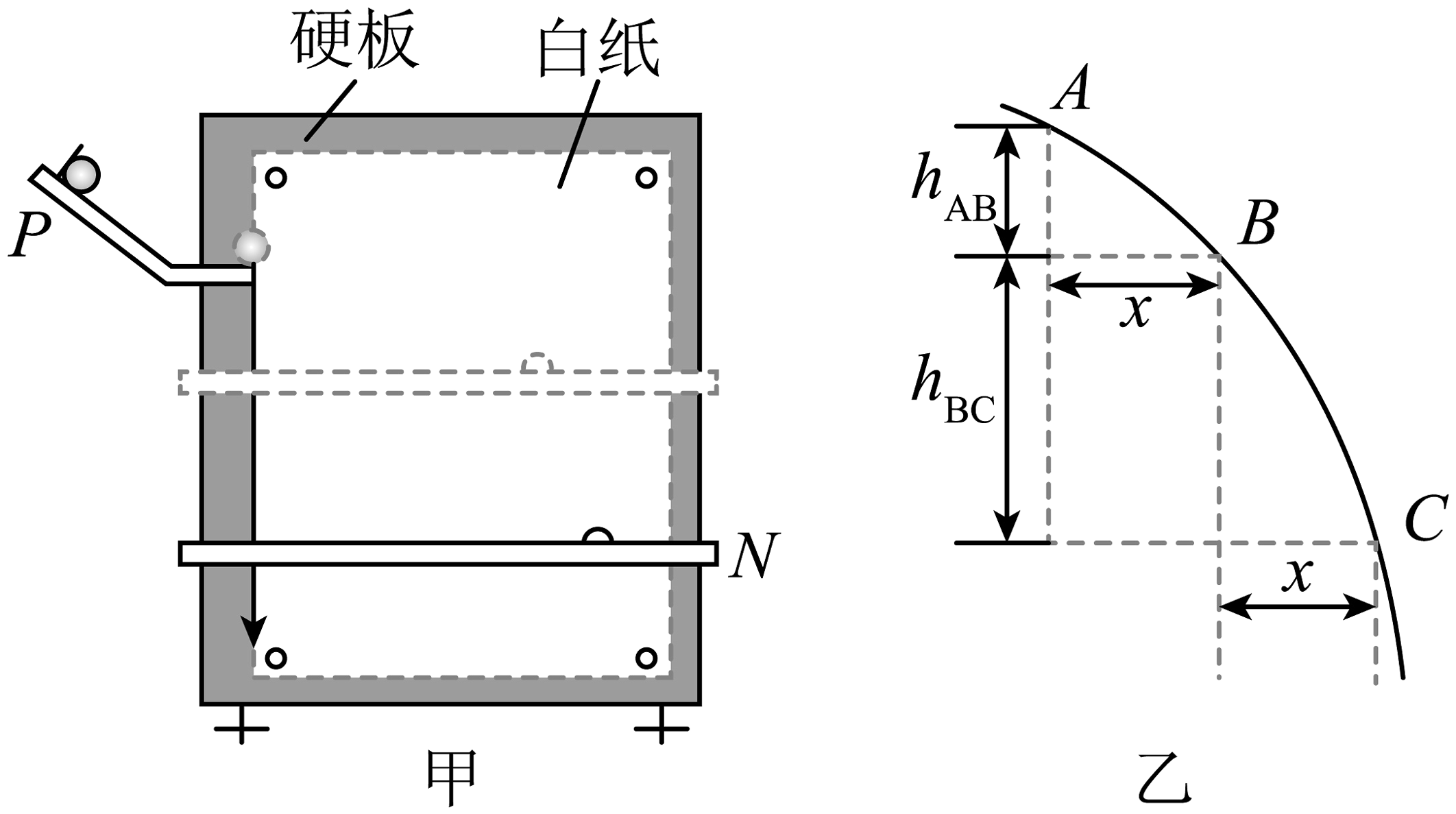 (3)某同学在白纸上记录了小球的运动轨迹,若小球在运动途中的几个位置如图乙中的所示,测出的长度,则小球平抛的初速度大小为(用和当地重力加速度表示)。
