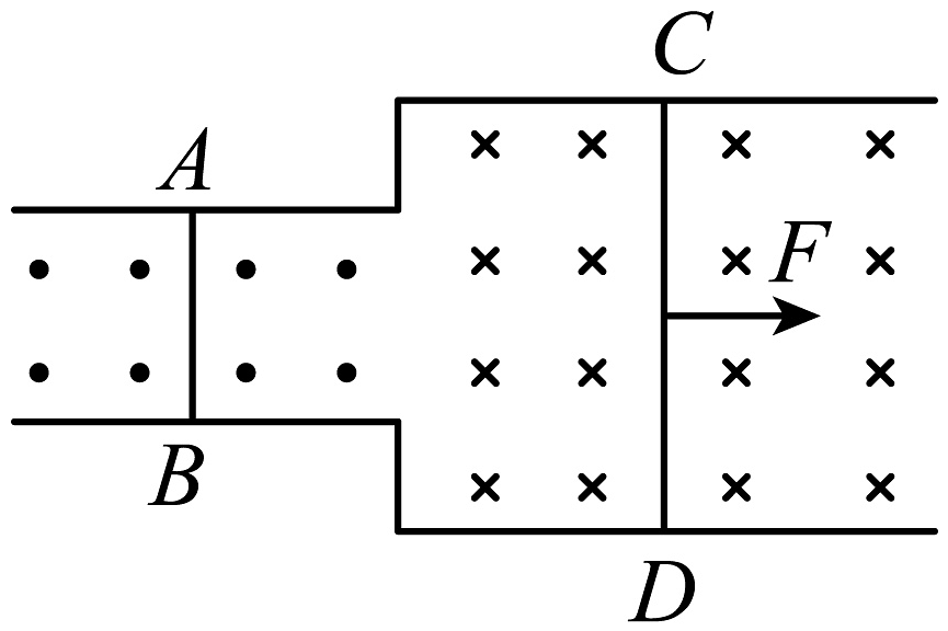 8、如图所示,两根质量均为m的金属棒垂直地放在光滑的水平导轨上,左、右两部分导轨间距之比为1:2,AB棒长度为L,CD棒长度为2L,导轨间左、右两部分有大小相等、方向相反的匀强磁场,两棒电阻与棒长成正比,不计导轨电阻,现用水平恒力F向右拉CD棒,使CD棒向右运动,导轨足够长,磁场区域足够大。下列说法正确的是( )A、稳定后,AB棒向左匀加速运动,CD棒向右匀加速运动,且AB棒的加速度大小是CD棒的加速度大小的2倍 B、稳定后,AB棒向左匀速运动,CD棒向右匀速运动,且AB棒的速度大小是CD棒的速度大小的2倍 C、如果F作用一段时间后,AB棒和CD棒的速度大小均为v,此时立即撤去拉力F后,CD棒的最终速度大小为 , 方向向右 D、当AB棒和CD棒的速度大小均为v时,撤去拉力F后,整个回路产生的焦耳热为