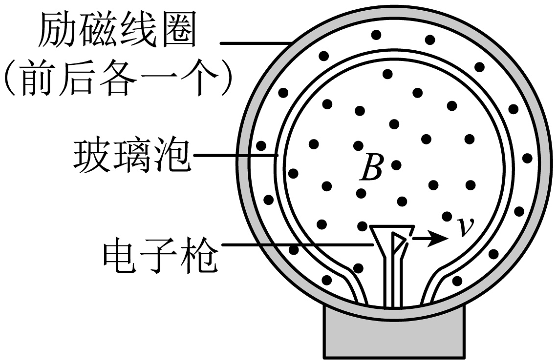 20、如图所示为洛伦兹力演示仪的结构图。励磁线圈产生的匀强磁场方向垂直纸面向外,电子束由电子枪产生,其速度方向与磁场方向垂直。电子速度的大小和磁场强弱可分别由通过电子枪的加速电压和励磁线圈的电流来调节(电流越大,磁场越强)。下列说法中正确的是( )A、仅增大励磁线圈中电流,电子束径迹的半径变大 B、仅提高电子枪加速电压,电子束径迹的半径变大 C、仅增大励磁线圈中电流,电子做圆周运动的周期将变大 D、仅提高电子枪加速电压,电子做圆周运动的周期将变大