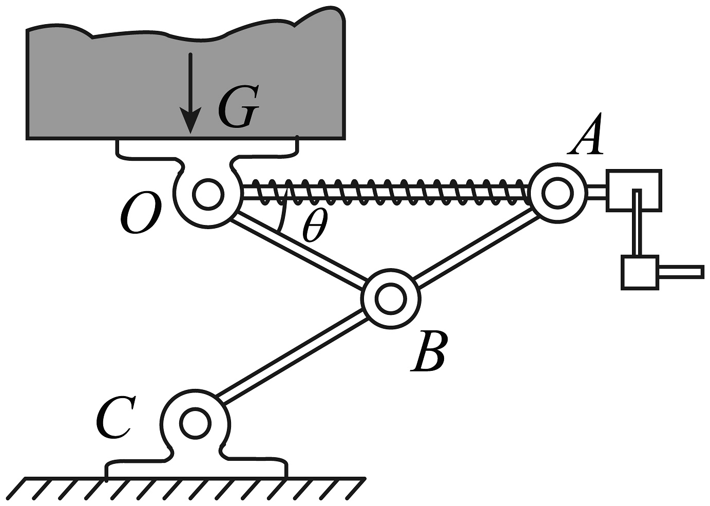18、如图为常见的“汽车千斤顶”。当汽车需要换轮胎时,司机将它放在车身底盘和地面之间,只需摇动手柄使螺旋杆转动,O、A之间的距离就会逐渐减小,O、C之间的距离就会增大,就能将汽车车身缓缓地顶起来。在千斤顶将汽车顶起来的过程中,下列关于、之间的弹力的说法正确的是( )A、、之间的弹力不断变大 B、、之间的弹力不断变小 C、之间的弹力变大、之间的弹力变小 D、之间的弹力变小、之间的弹力变大