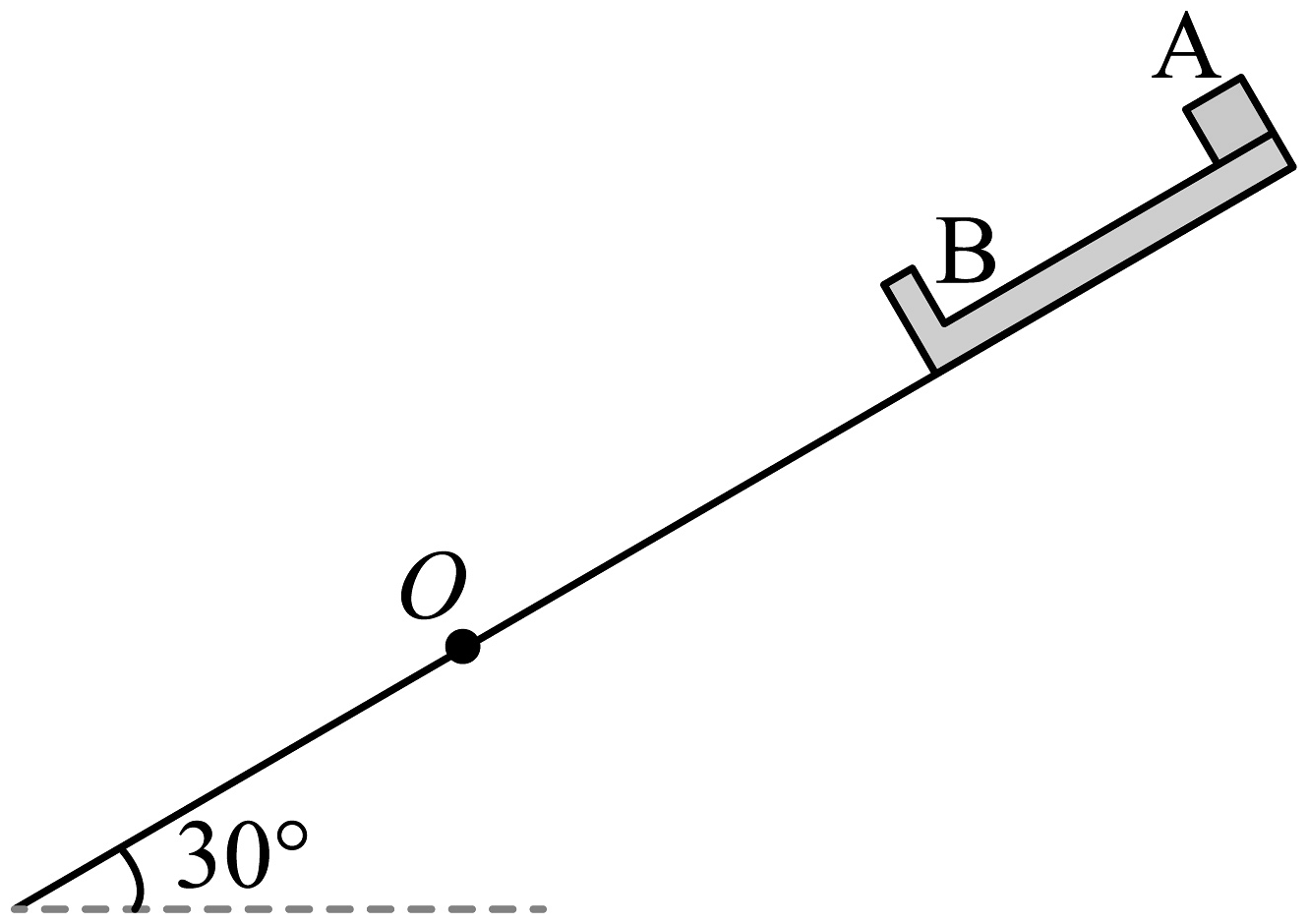 8、如图所示,倾角为30°的固定斜面足够长,置于斜面上的“L”型长木板B的上表面光滑,下表面与斜面上O点以上区域间的动摩擦因数为 , 与斜面上O点以下区域间的动摩擦因数为。某时刻在斜面上O点以上的某处自静止开始释放小物块A和长木板B,此时A在B的顶端,B的底端距O点的距离为长木板B长度的51倍,一段时间后A与B底端的凸起发生第一次碰撞,第一次碰撞后B的速度大小为。已知B的质量是A的质量的4倍,A与B底端凸起的碰撞为弹性碰撞,碰撞时间不计,B底端的凸起大小不计,A视为质点,重力加速度为g。