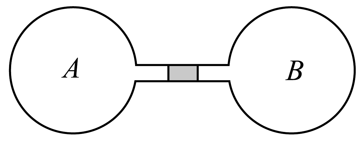 8、如图所示,体积相等的两容器A和B,用玻璃管相连,当A中气体温度为10℃,B中气体温度为20℃时,水银柱静止在细管中央,如果A、B两容器温度都降低10℃,则水银柱( )A、向左移动 B、向右移动 C、静止不动 D、移动方向无法确定