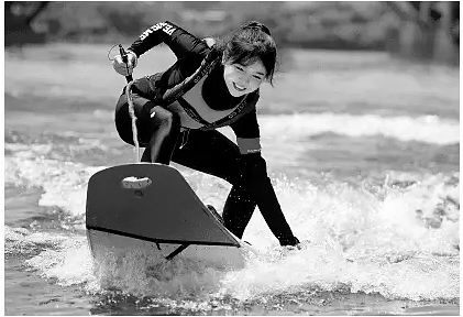 19、水上冲浪运动是一项时尚运动,深受年轻人喜欢。如图质量为的女生在河里用电动冲浪板沿直线冲浪,电动冲浪板额定功率 , 最大速度 , 冲浪板(含电池)质量。假设运动过程中冲浪板受到的阻力不变,下列说法正确的是( )A、冲浪板受到的阻力约为 B、若冲浪板以恒定功率启动,约经达到最大速度 C、若冲浪板由静止开始以加速度做匀加速直线运动可持续 D、若冲浪板以额定功率启动运动了后,立即关闭电源,冲浪板运动的总距离为