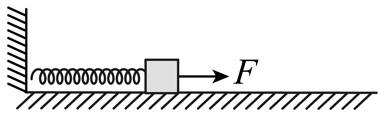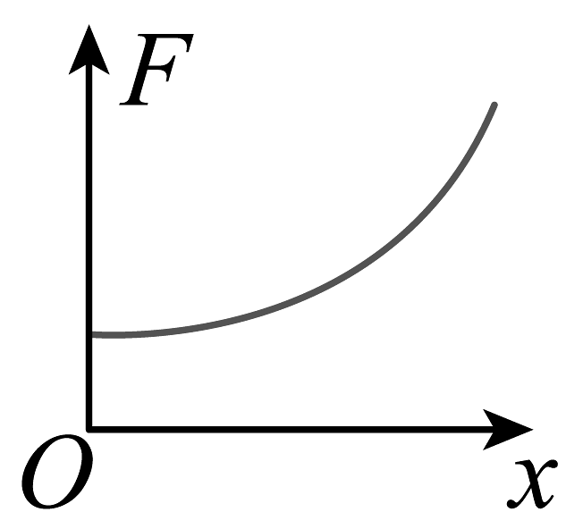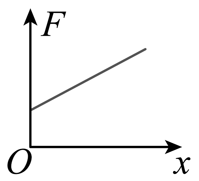 7、如图,一水平轻质弹簧的左端固定在竖直墙壁上,右端与一小物块相连,刚开始物块静止且弹簧处于原长状态,现对物块施加一个水平向右的拉力F使物块向右做匀加速直线运动。弹簧始终处于弹性限度内,物块与水平地面间的动摩擦因数恒定,不计空气阻力。下列关于拉力F随物块位移x变化的图像正确的是( )A、