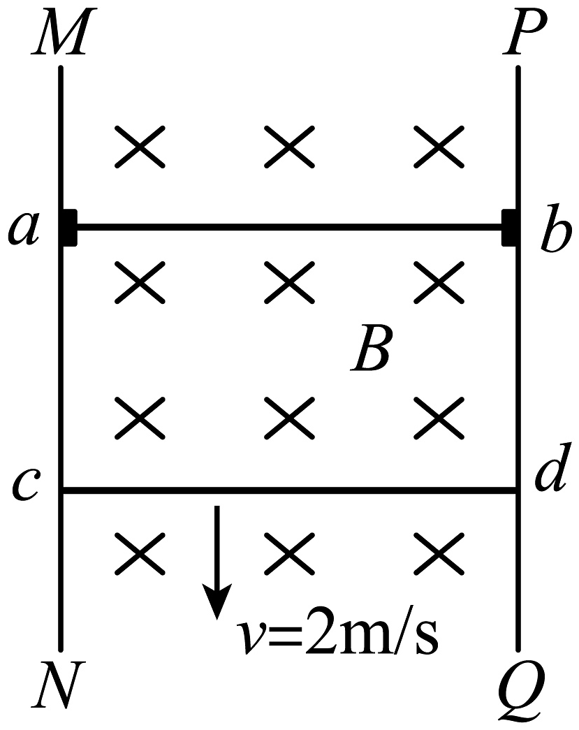 6、如图,两根相距的平行光滑导轨竖直放置,处在垂直于其平面的匀强磁场中,磁场方向垂直于纸面向里,磁感应强度大小为。在导轨上放置两根长度与导轨间距等长的金属棒和 , 棒的电阻为 , 固定在导轨上;棒的电阻为 , 它正以的速度做竖直向下的匀速直线运动。导轨足够长,两金属棒与导轨接触良好,导轨的电阻不计。下列关于棒所受安培力的分析正确的是( )A、大小为 , 方向竖直向上 B、大小为 , 方向竖直向下 C、大小为 , 方向竖直向上 D、大小为 , 方向竖直向下