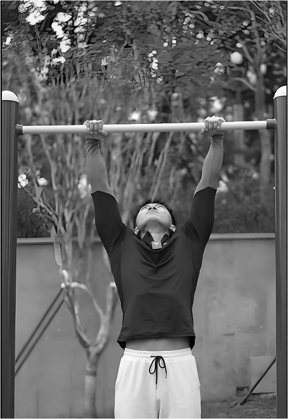 6、如图小明同学静止悬挂在单杠上,下列说法中正确的是( )A、小明一定受到三个力的作用 B、小明受到的支持力是因为手指的形变产生的 C、两手臂间夹角越小,小明受到单杠作用力越小 D、两手臂间夹角越大,小明每只手受到摩擦力越大
