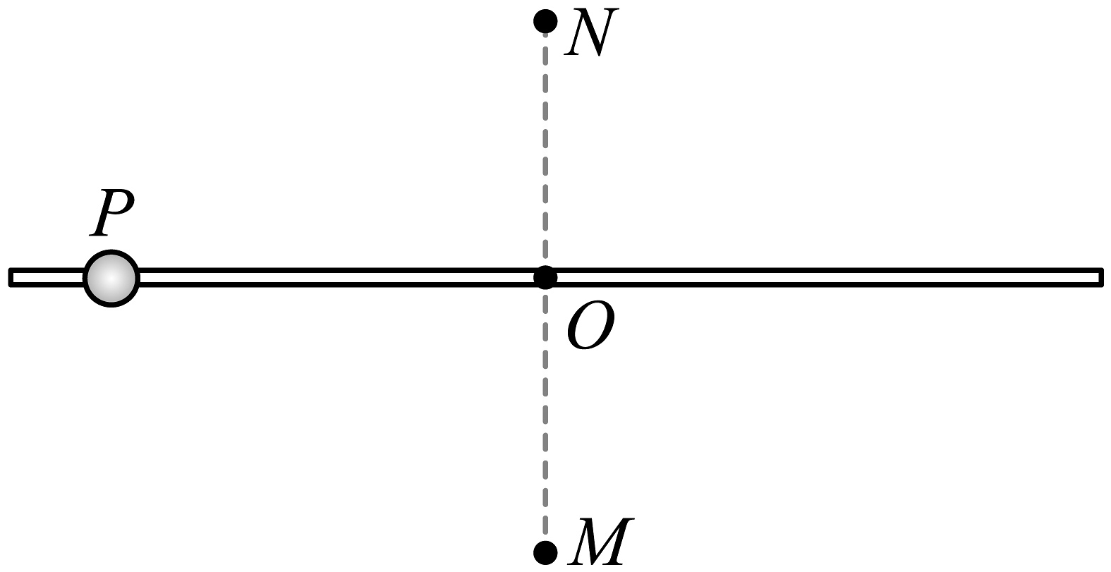 17、如图所示,在水平面内的M、N两点各固定一个点电荷,带电量均为。O为MN的中点,过O点固定一个绝缘杆,杆水平且与MN垂直。一光滑带孔小球P穿在绝缘杆上,小球带负电,开始时在MN的左侧,现给小球一向右的初速度,则小球向右运动的过程中( )A、小球从开始到O点,做加速度增大的加速运动 B、小球受到绝缘杆的弹力先增大后减小 C、若把N点变为 , 小球做匀速运动 D、若把N点变为 , 小球受到绝缘杆的弹力始终不变