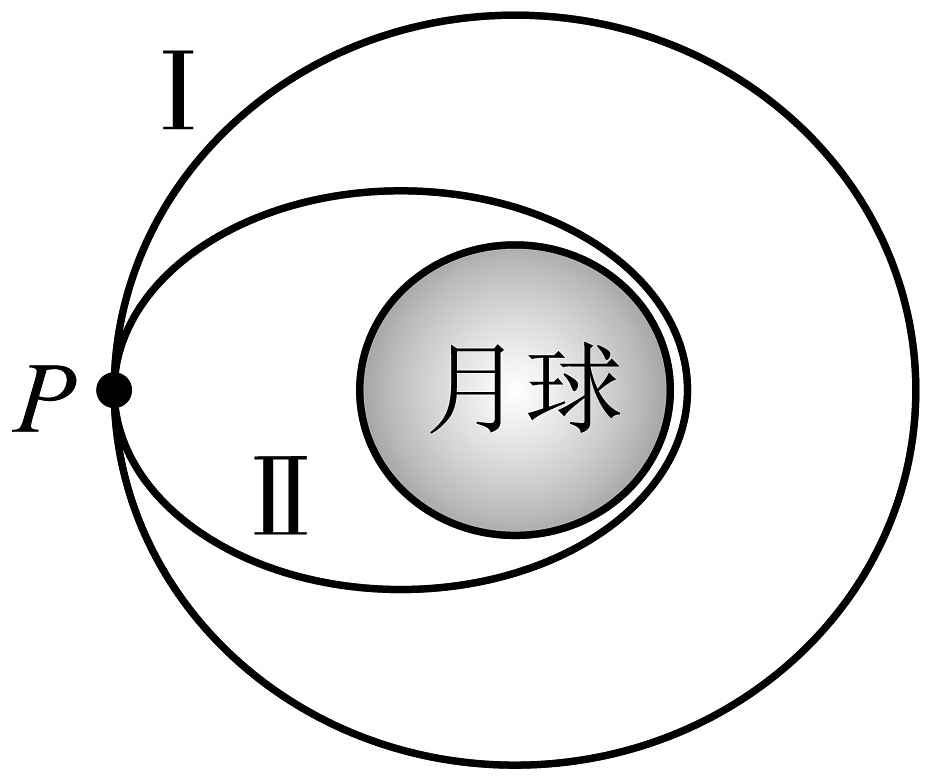 8、“嫦娥六号”探测器经过地月转移、近月制动阶段后,进入高度约200千米的圆形环月轨道Ⅰ。此后经2次降轨,进入近月点15千米、远月点200千米的椭圆轨道Ⅱ上运动。P点为轨道Ⅰ、Ⅱ的交点,如图所示,此时轨返组合体(轨道器和返回器组合体)在圆形环月轨道Ⅰ上运动。则“嫦娥六号”( )A、在轨道Ⅰ、Ⅱ经过P点时加速度相同 B、在轨道Ⅰ的机械能与轨道Ⅱ相同 C、与轨返组合体的运动周期相同 D、经过P点时的速度比轨返组合体的速度大