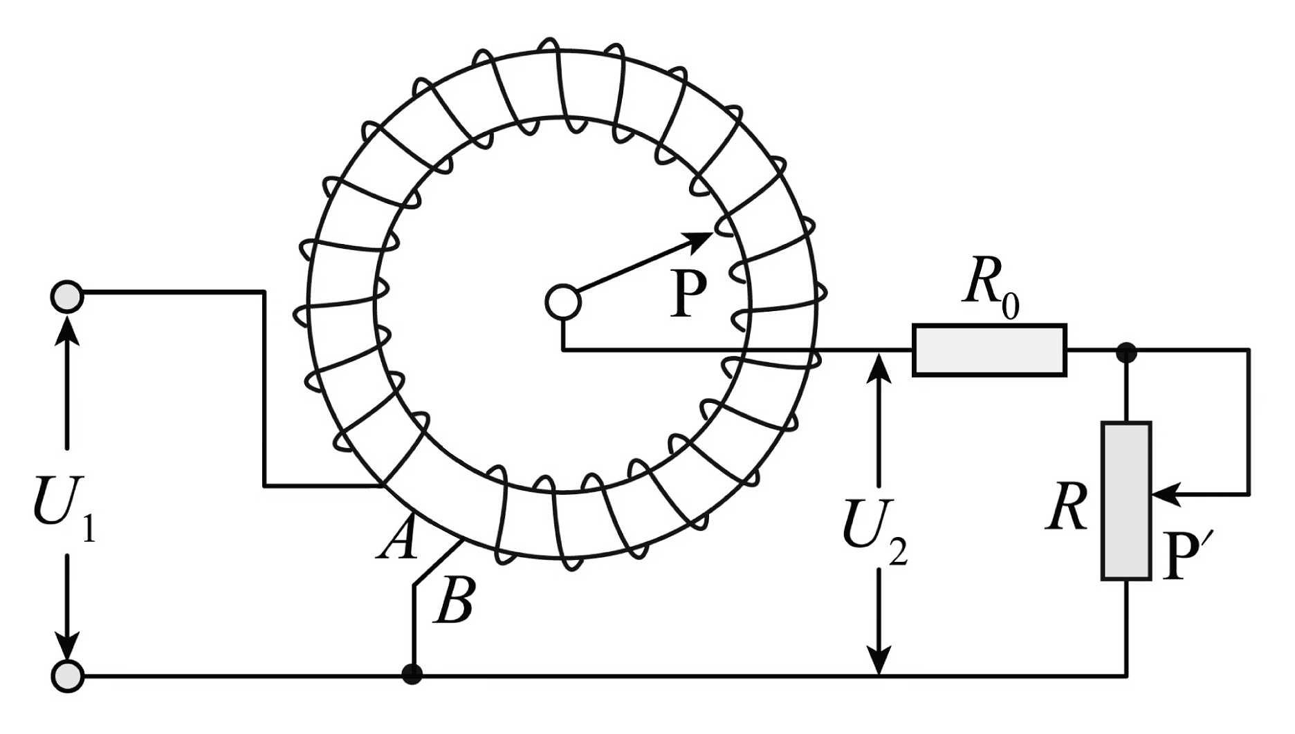 9、如图为理想的可调式自耦变压器,铁芯上只有一组线圈,将其两端接在间作为原线圈,副线圈是线圈的一部分接有定值电阻和滑动变阻器分别为原副线圈两端电压,其大小均可调节,分别为原副线圈中的电流,则( )A、保持不变,当滑动触头P顺时针转动一小角度,变小 B、保持不变,当滑动触头向下移动时,变小 C、保持不变,当滑动触头P顺时针转动一小角度,变大 D、保持不变,当滑动触头向下移动时,变小