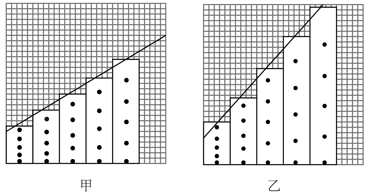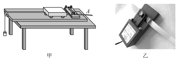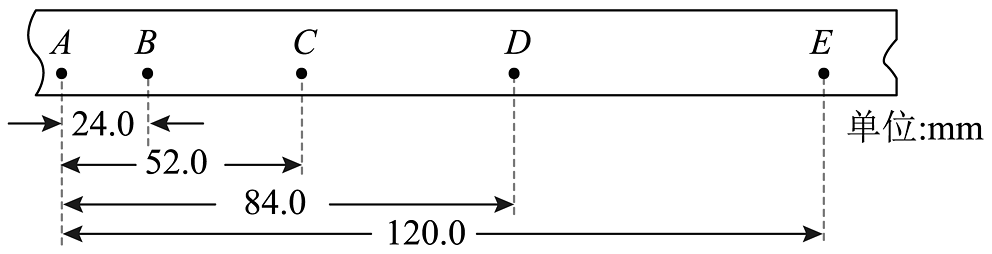 (1)、某同学选用了如图乙所示的打点计时器,它的工作电源是__________;A、交流 B、直流 C、交流约为 D、直流约为(2)、下列操作中正确的有__________;A、在释放小车前,小车要靠近打点计时器 B、打点计时器应放在长木板的有滑轮一端 C、应先接通电源,后释放小车 D、把木板一端稍微抬高平衡小车运动过程受到的阻力(3)、实验中,把打点计时器接交流电,打出的一条纸带如图,A、B、C、D、E为我们在纸带上所选的计数点,相邻计数点之间有四个点未画出,各点间的距离如图所示,则在打D点时,小车的速度为 , 并可求得小车的加速度大小为。(计算结果都保留两位有效数字)(4)、小明利用打点计时器研究甲和乙两个物体的运动,分别得到2条纸带。对每条纸带,均选择合适的点作为第一个计数点,再依次每5个点取1个计数点,并在各计数点处将其剪断,然后将这些剪断的纸条粘贴在相同的坐标纸上,最后将纸条上端中心连起来,如图甲、乙所示。由图可判断__________。A、乙物体的加速度比甲大 B、两物体均做匀速直线运动 C、打第三个计数点时,甲物体的速度比乙大 D、打第一个计数点时,甲物体的速度有可能为零(5)、Ⅱ.用打点计时器可测纸带运动的时间和位移。下面是没有按操作顺序写的不完整的实验步骤,按照你对实验的理解,在各步骤空白处填上适当的内容,然后根据实际操作的合理步骤,将各步骤的字母代号按顺序写在空白处。A.在电磁打点计时器两接线柱上分别接导线,导线另一端分别接交流电源的两接线柱