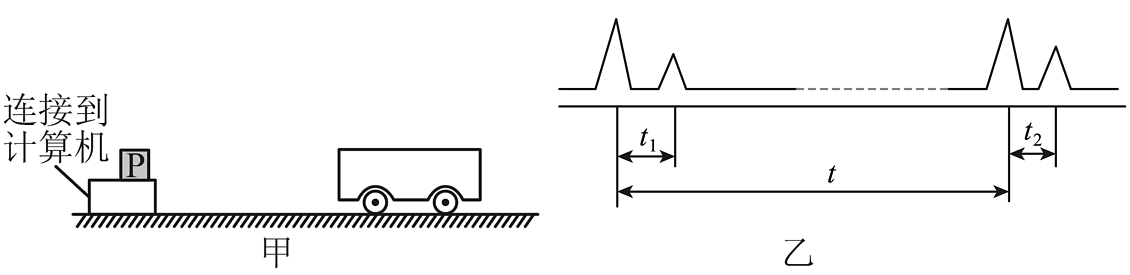 18、如图甲所示为速度传感器的工作示意图,P为发射超声波的固定小盒子,工作时P向被测物体发出短暂的超声波脉冲(速度为v),脉冲被运动的物体反射后又被P接收。从P发射超声波开始计时,经过时间t再次发射超声波脉冲。显示屏上如图乙所示,均为已知量。则下列说法正确的是( )A、物体到小盒子P的距离越来越近 B、第一次发射超声波被汽车反射时,汽车与盒子之间的距离为 C、汽车两次接收超声波的时间间隔为t D、汽车速度为