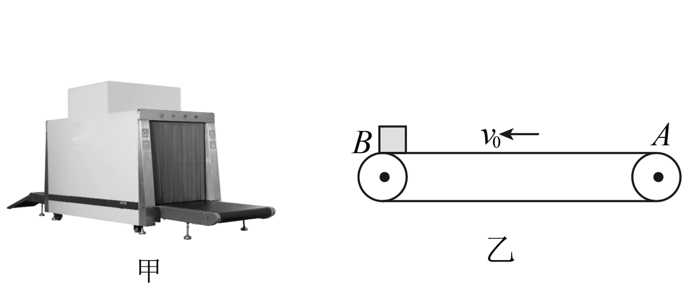 17、如图甲所示,为机场、火车站和地铁站等场所的安全检查仪,其传送装置可简化为如图乙所示模型:绷紧的传送带始终保持的恒定速率运行。旅客把质量为10kg的行李无初速度地放在A处,行李可视为质点,与传送带之间的动摩擦因数 , AB间的距离为 , g取。则( )A、从A到B的运动时间是3s B、摩擦产生的内能是10J C、摩擦力对行李做的功是40J D、电动机运输行李多输出的能量为40J