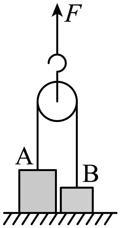 13、如图,物块A和B的质量分别为4m和m,开始A、B均静止,细绳拉直,在竖直向上拉力F=6mg作用下,动滑轮竖直向上加速运动。已知重力加速度为g,动滑轮的质量、半径忽略不计,不考虑绳与滑轮之间的摩擦,且细绳足够长,则在滑轮向上运动过程中,物块A和B的加速度大小分别为( )A、 , B、 C、 , D、 ,