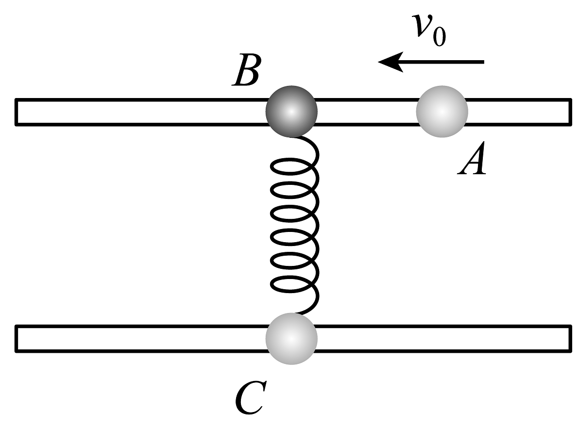 9、如图所示,A、B、C三个半径相同的小球穿在两根平行且光滑的足够长的杆上,A、B、C三球的质量分别为 , 初状态三个小球均静止,B、C球之间连着一根轻质弹簧,弹簧处于原长状态。现给A一个向左的初速度 , A、B发生弹性碰撞,下列说法正确的是( )A、球A和球B碰撞结束时,A球的速度大小为4m/s B、球A和球B碰撞结束时,B球的速度大小为8m/s C、球A和球B碰后,球B的最小速度为1m/s D、球A和球B碰后,弹簧的最大弹性势能可以达到38.4J