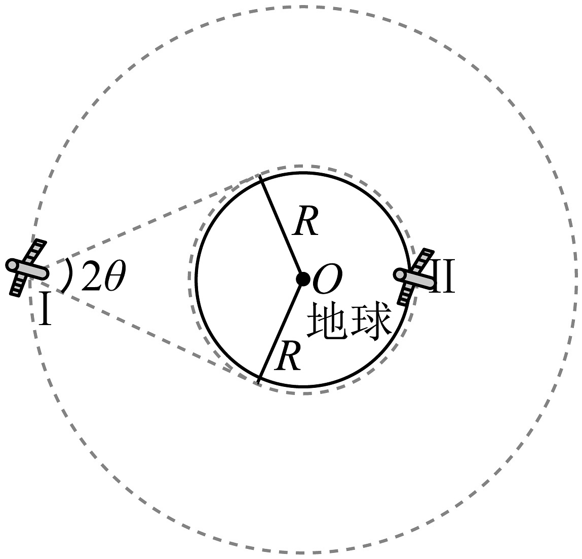 9、如图所示,Ⅰ为同步卫星轨道,其对地张角为 , Ⅱ为近地卫星轨道。知地球的自转周期为 , 万有引力常量为 , 根据题中条件,可求出( )A、卫星在Ⅱ轨道运动的线速度小于Ⅰ轨道的线速度 B、卫星在Ⅰ轨道运动的周期等于 C、卫星在Ⅰ轨道和Ⅱ轨道的加速度之比为 D、同一卫星在Ⅰ轨道机械能和Ⅱ轨道的机械能相等