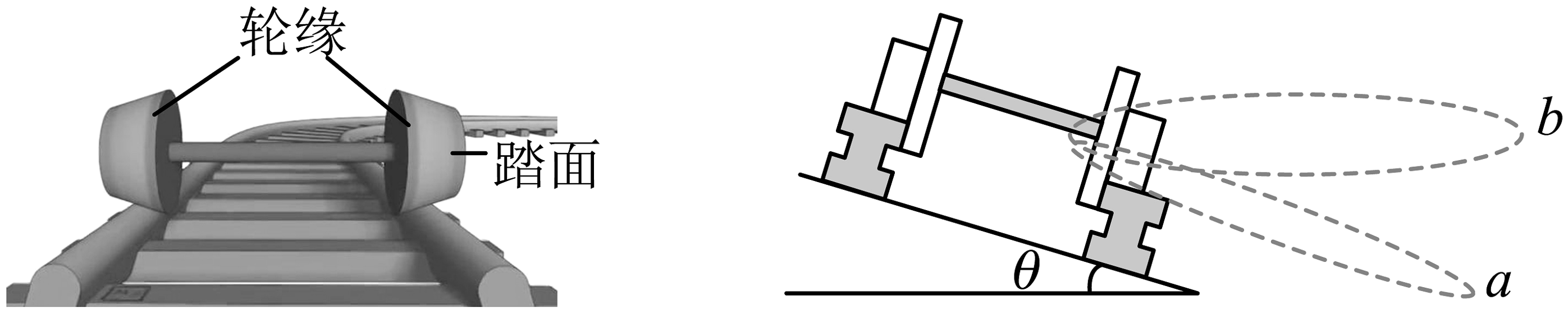 10、在修筑铁路时,为了消除轮缘与铁轨间的挤压,要根据弯道的半径和规定的行驶速度,设计适当的倾斜轨道,即两个轨道存在一定的高度差。火车轨道在某转弯处其轨道平面倾角为 , 转弯半径为 , 在该转弯处规定行驶的速度为 , 则下列说法中正确的是( )A、列车运动的圆周平面为图中的 B、列车受到重力、轨道的支持力和向心力 C、若列车以大于的速度通过该圆弧轨道,车轮将侧向挤压内轨 D、列车在该转弯处规定行驶的速率为