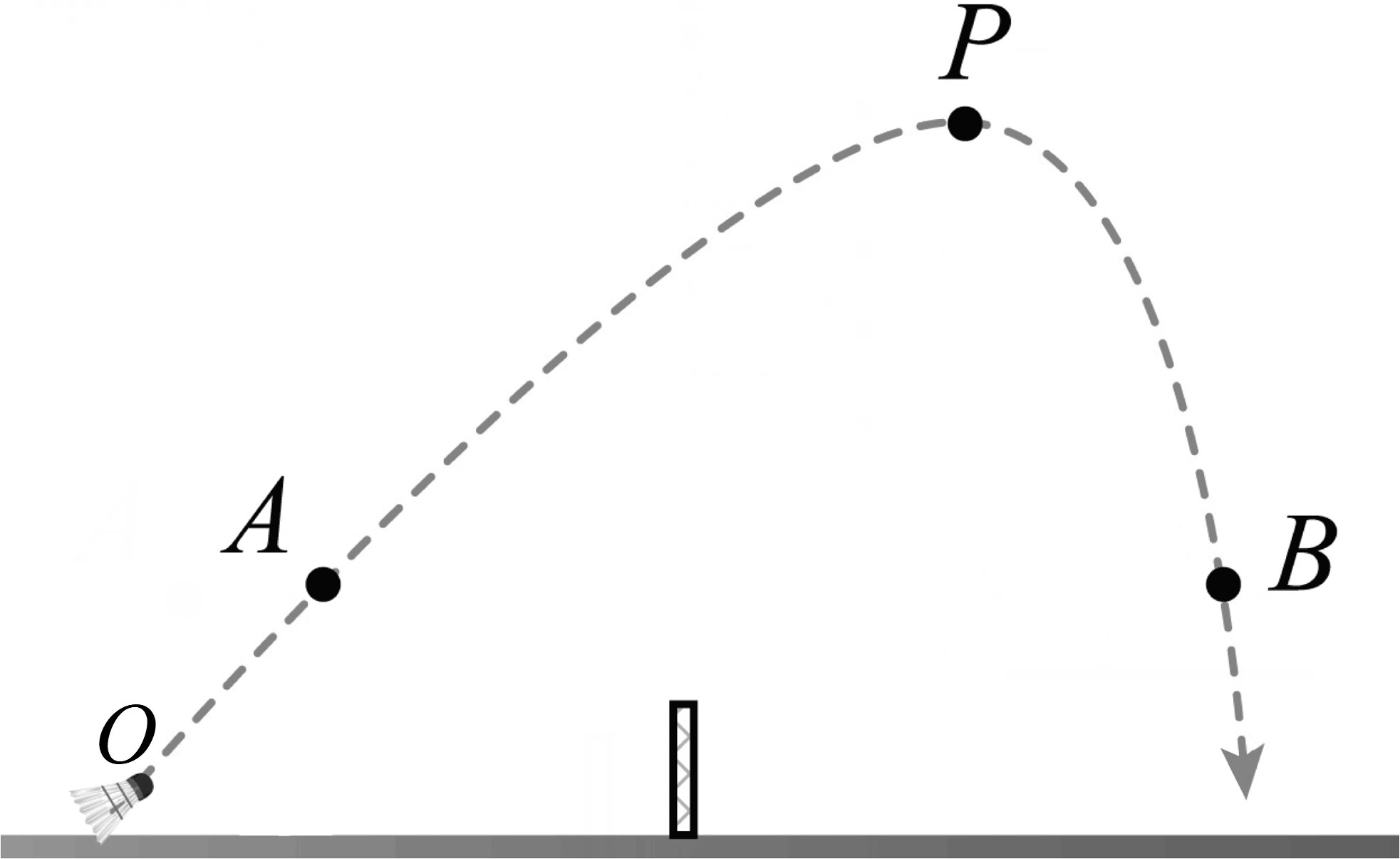 14、如图所示是羽毛球从点被击出后的飞行轨迹图,图中为该轨迹上等高的两点,为该轨迹的最高点,则对该羽毛球下列说法正确的是( )A、在两点的速度相同 B、在上升阶段,羽毛球加速度的竖直分量大于重力加速度的值 C、段重力的冲量大于段重力的冲量 D、在点的动量为0