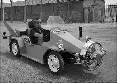 19、如图所示为一辆新研发的风电混合动力小汽车,其最前边装一类似于电风扇的风力发电机。已知风扇叶片长度约为 , 空气密度为 , 假设风力发电机能将的风能转化为电能,则当该车在无风天气以速度匀速行驶时,风力发电机发电的功率约为( )A、 B、 C、 D、