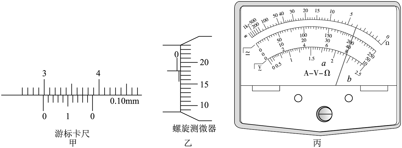 ①用多用电表测金属圆柱体的电阻,选择电阻“”档,结果如图丙所示,其电阻为;