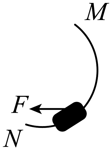 6、“福建舰”在海面上行驶时进行“转向”操作,沿圆周曲线由M向N匀速率转弯。则在转向中航母所受的合力F方向,正确的是( )A、