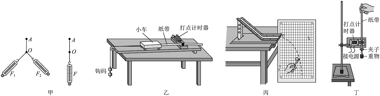 7、2023年9月21日,在距离地球400公里的中国空间站,3位航天员老师进行了第四节“太空授课”。小张同学认真观看了太空授课后,思考:以下几个物理课中的实验可以在太空中完成的有( )A、按图甲进行“探究两个互成角度的力的合成规律”实验 B、按图乙进行“探究物体加速度与力、质量的关系”实验 C、按图丙进行“探究平抛运动的规律”实验 D、按图丁进行“探究机械能守恒定律”实验