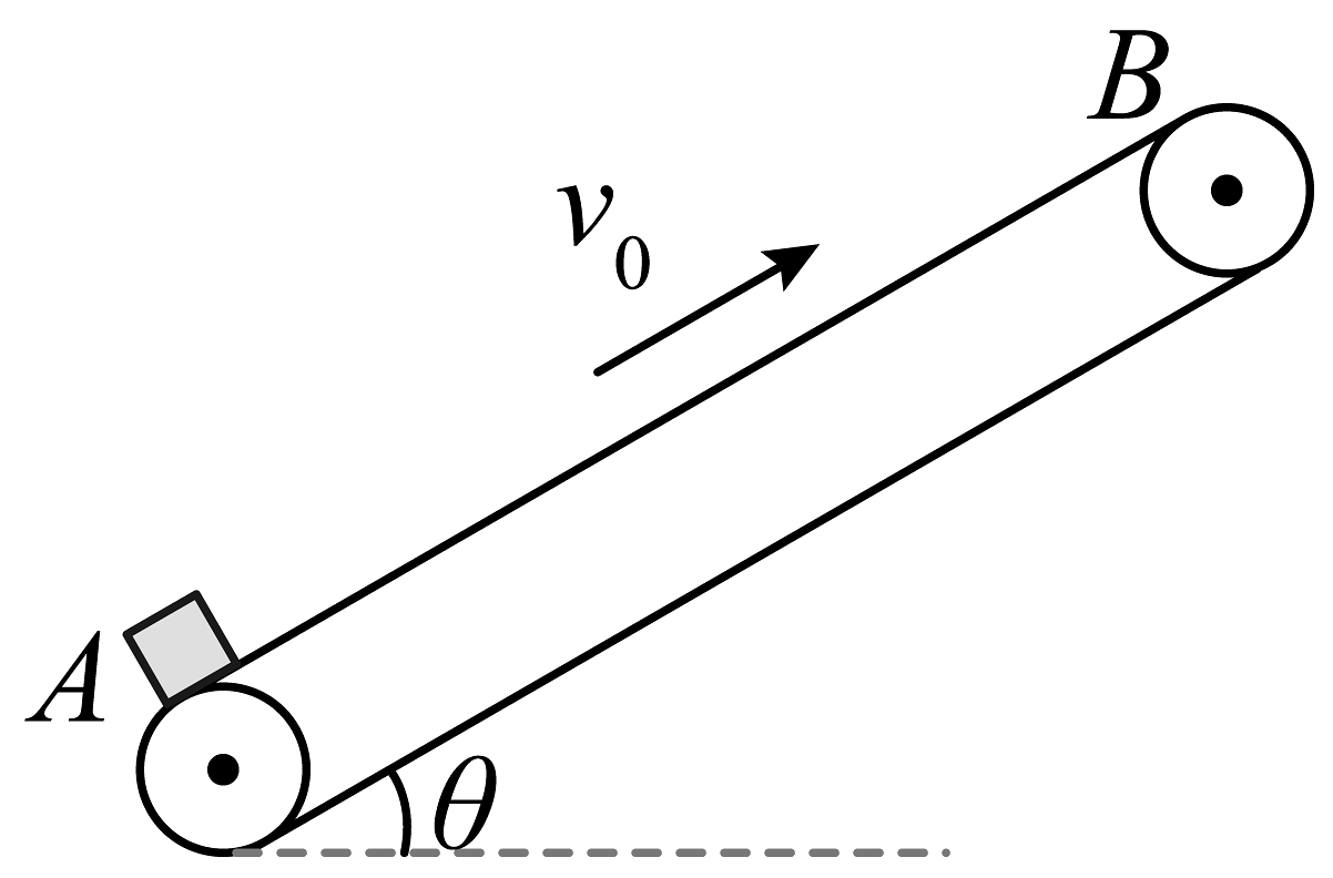 19、如图为某运送快递的倾斜传送带的简化模型,倾角的传送带在电动机的带动下能以的恒定速率顺时针转动,皮带始终是绷紧的。现将质量的快递包(可视为质点)无初速度地放到传送带底端A点。已知传送带A点到顶端B点的距离 , 快递包与传送带之间的动摩擦因数 , 最大静摩擦力等于滑动摩擦力,则快递包从A点运送到B点( )A、所需时间为4s B、传送带对快递包做功为12J C、摩擦产生的热量为48J D、电动机因运送此快递包多做了54J的功