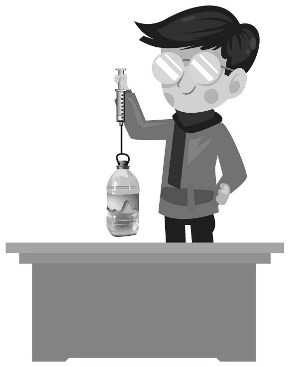 8、如图所示,某老师用封闭着一定质量理想气体、横截面积的注射器提起质量的桶装水,此时注射器内气柱长度。已知大气压强 , 环境温度 , 注射器内气柱最大长度为8cm,g取 , 注射器和水桶质量可以忽略,不计一切阻力,注射器密封良好。求: