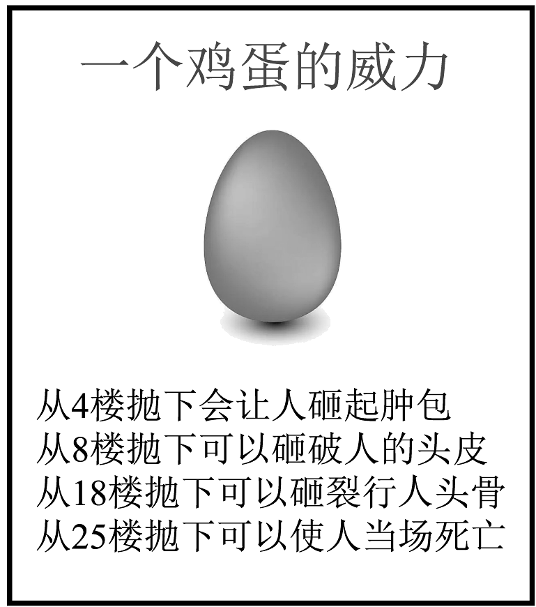 3、城市进入高楼时代后,高空坠物已成为危害极大的社会安全问题。如图为一则安全警示广告,形象描述了高空坠物对人伤害的严重性。若一个的鸡蛋从居民楼25层队下,与地面碰撞时间约为 , 每层楼高度为。鸡蛋对地面的冲击力约为( )A、 B、 C、 D、