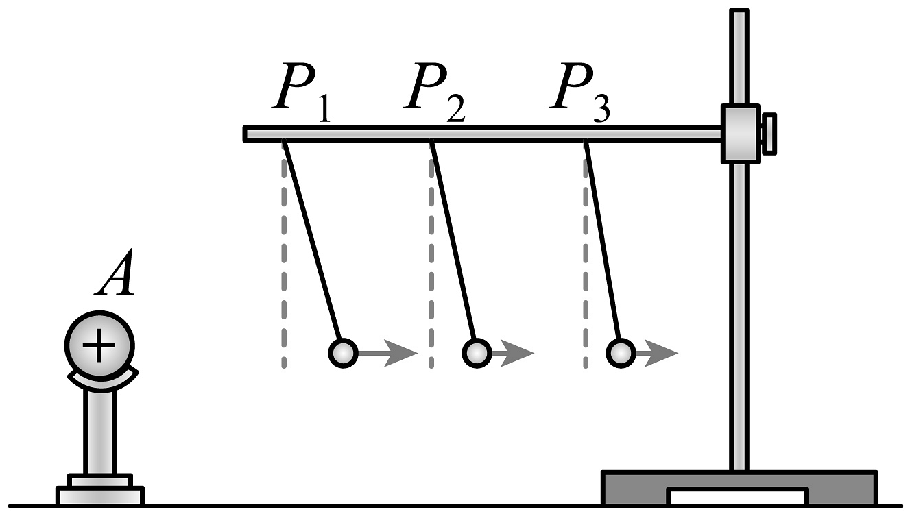 6、某物理兴趣小组利用图示装置来探究影响电荷间静电力的因素。图中,是一个带正电的带电体,系在绝缘丝线上带正电的小球会在静电力的作用下发生偏离,静电力的大小可以通过丝线偏离竖直方向的角度显示出来。(1)、为探究静电力与电荷间距离的关系,保持带电体的位置和电荷量不变,把电荷量(填“相同”或“不同”)的小球系在丝线上,先后挂在横杆上的、、等位置,比较小球在不同位置所受带电物体的静电力的大小。这里用到的实验方法是(填“控制变量法”“理想实验法”或“微小量放大法”)。(2)、实验时丝线悬挂的小球质量为 , 重力加速度大小为 , 可认为带电体与小球在同一水平线上,当小球偏离竖直方向的角度为时保持静止,小球所受静电力大小为(用、、表示)。