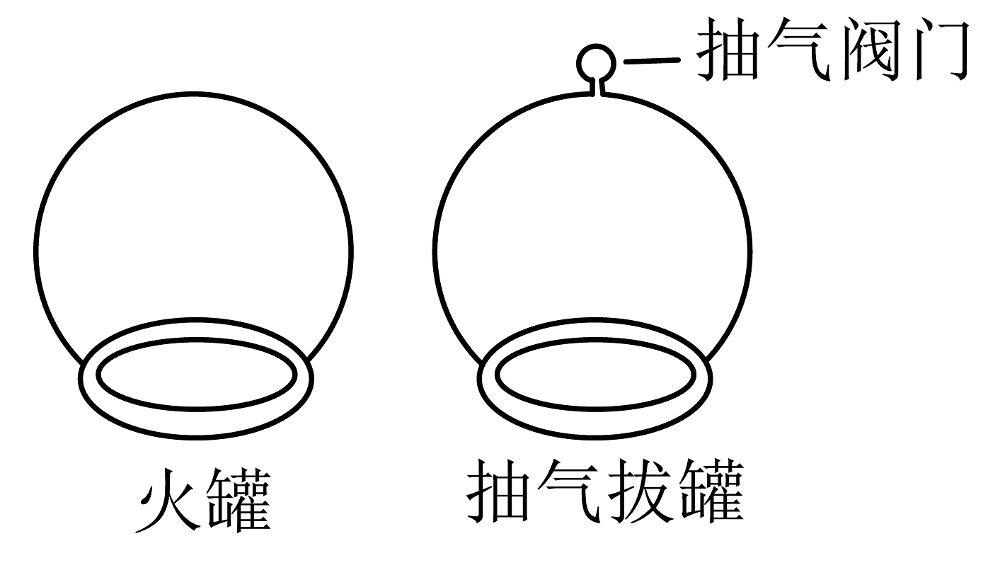 8、中医拔罐的物理原理是利用玻璃罐内外的气压差使罐吸附在人体穴位上,进而治疗某些疾病。常见拔罐有两种,如图所示,左侧为火罐,下端开口;右侧为抽气拔罐,下端开口,上端留有抽气阀门。罐内气体初始压强与外部大气压相同。使用火罐时,先加热罐中气体,然后迅速按到皮肤上,自然降温后火罐内部气压低于外部大气压,使火罐紧紧吸附在皮肤上。抽气拔罐是先把罐体按在皮肤上,再通过抽气降低罐内气体压强。某次使用火罐时,温度为450K,最终降到300K,因皮肤凸起,内部气体体积变为罐容积的。若换用抽气拔罐,抽气后罐内剩余气体体积变为罐容积的 , 罐内气压与火罐降温后的内部气压相同,忽略抽气过程中气体温度的变化。罐内气体均可视为理想气体,外部大气压。求:
