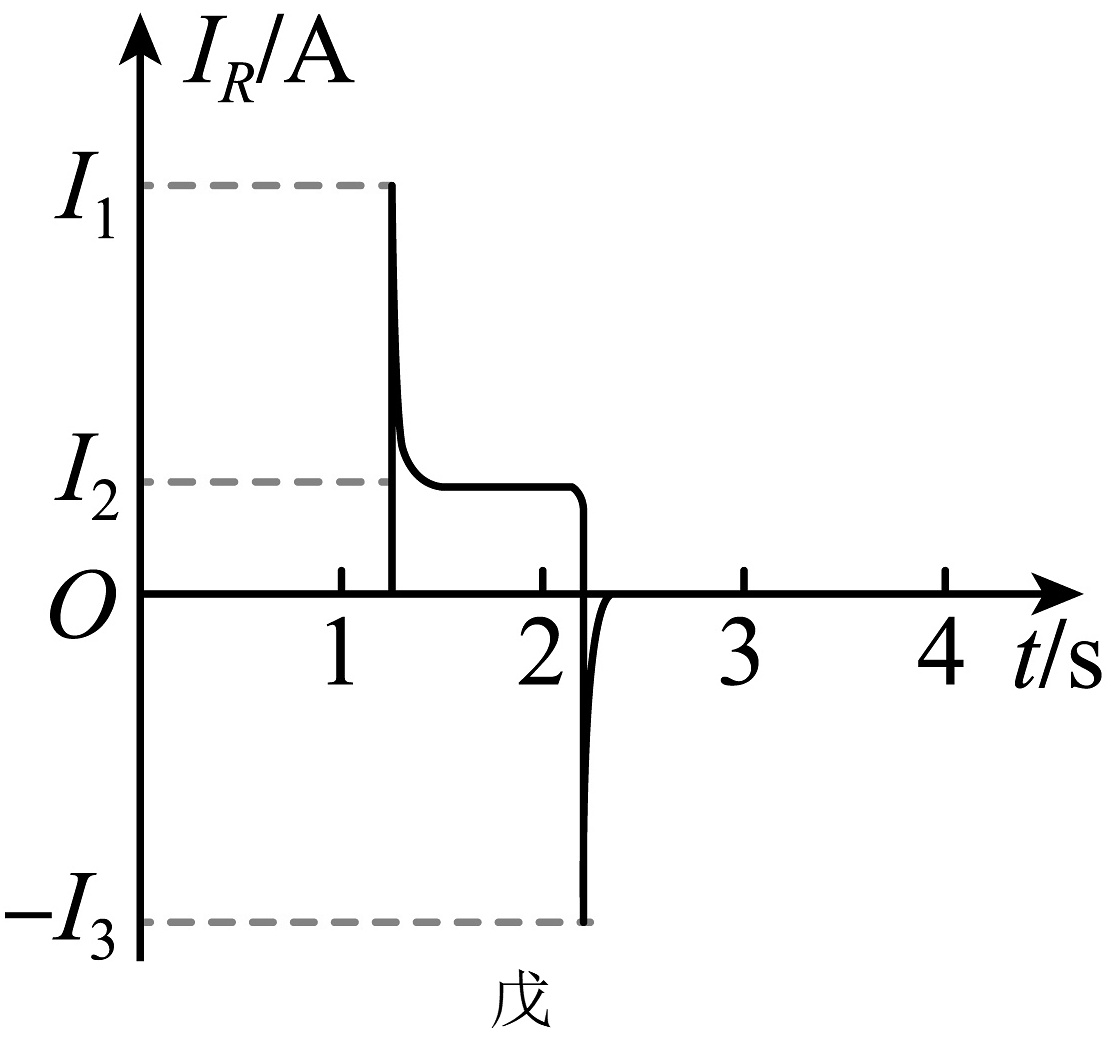 ②在“闭合开关—稳定一小段时间—断开开关”这个过程中,通过电流传感器得到图像如图戊所示。比较与的大小关系,有。(选填“>”“<”或“=”)