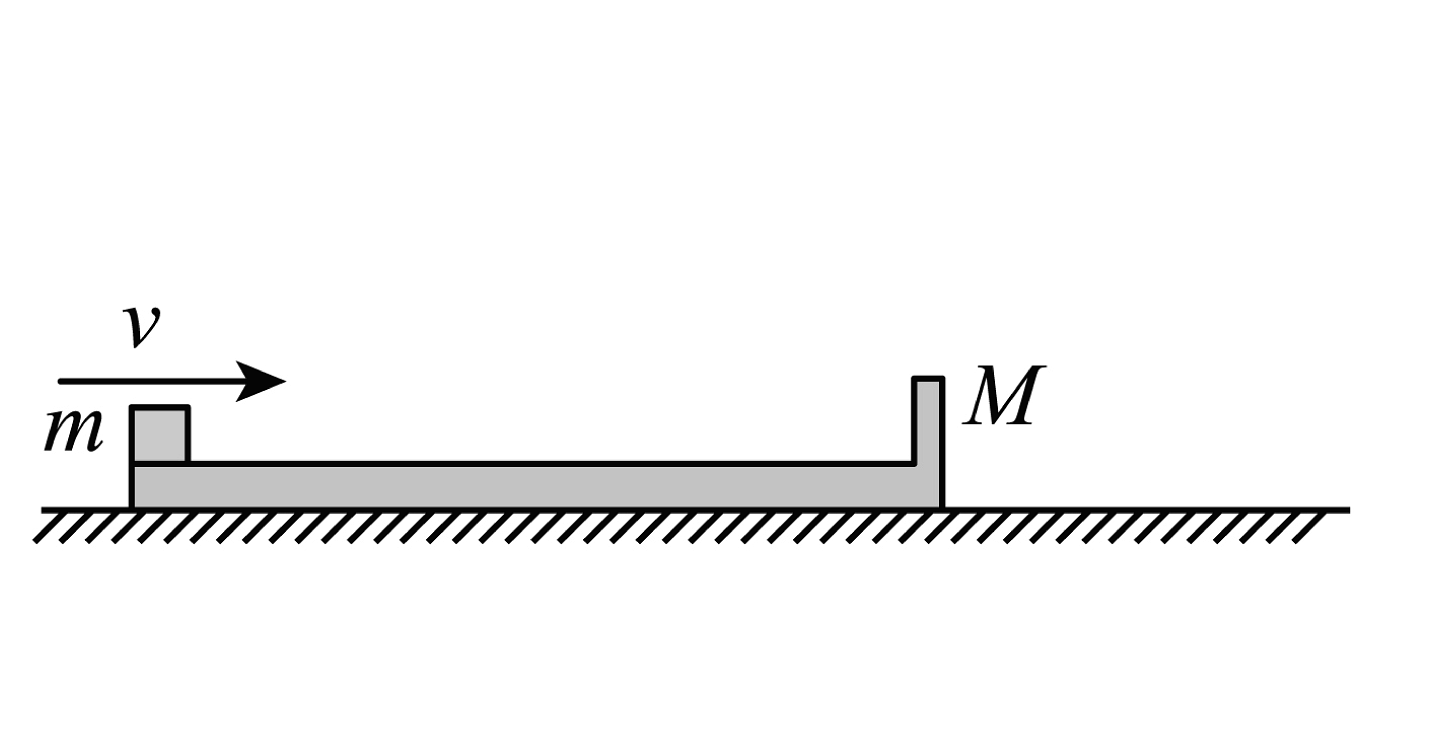 16、如图所示,一右端固定有竖直挡板的质量为M=2kg的木板静置于光滑的水平面上,另一质量m=1kg的物块(可视为质点)以v=6m/s的水平速度从木板最左端冲上木板,经过1s时间与右端挡板发生弹性碰撞。已知滑块与木板间的动摩擦因数为 , 最大静摩擦力可视为等于滑动摩擦力,求:()