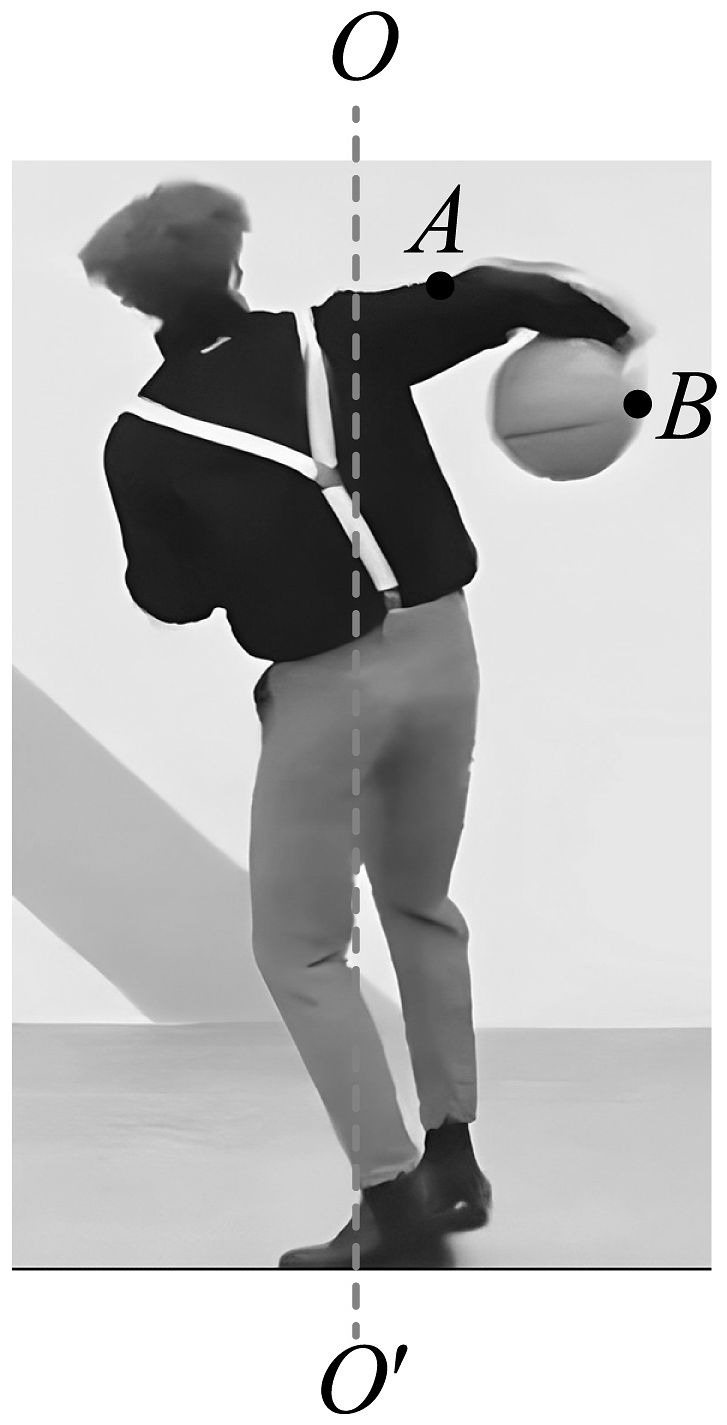 9、运球转身是篮球运动中重要的技术动作。如图甲所示为运动员运球转身的瞬间,此时运动员和篮球保持相对静止绕OO'轴转动,手臂上的A点与篮球边缘的B点到转轴的距离之比 , 下列说法正确的是( )A、A、B两点角速度大小之比 B、A、B两点的线速度大小之比 C、A、B两点的周期之比 D、A、B两点的向心加速度大小之比
