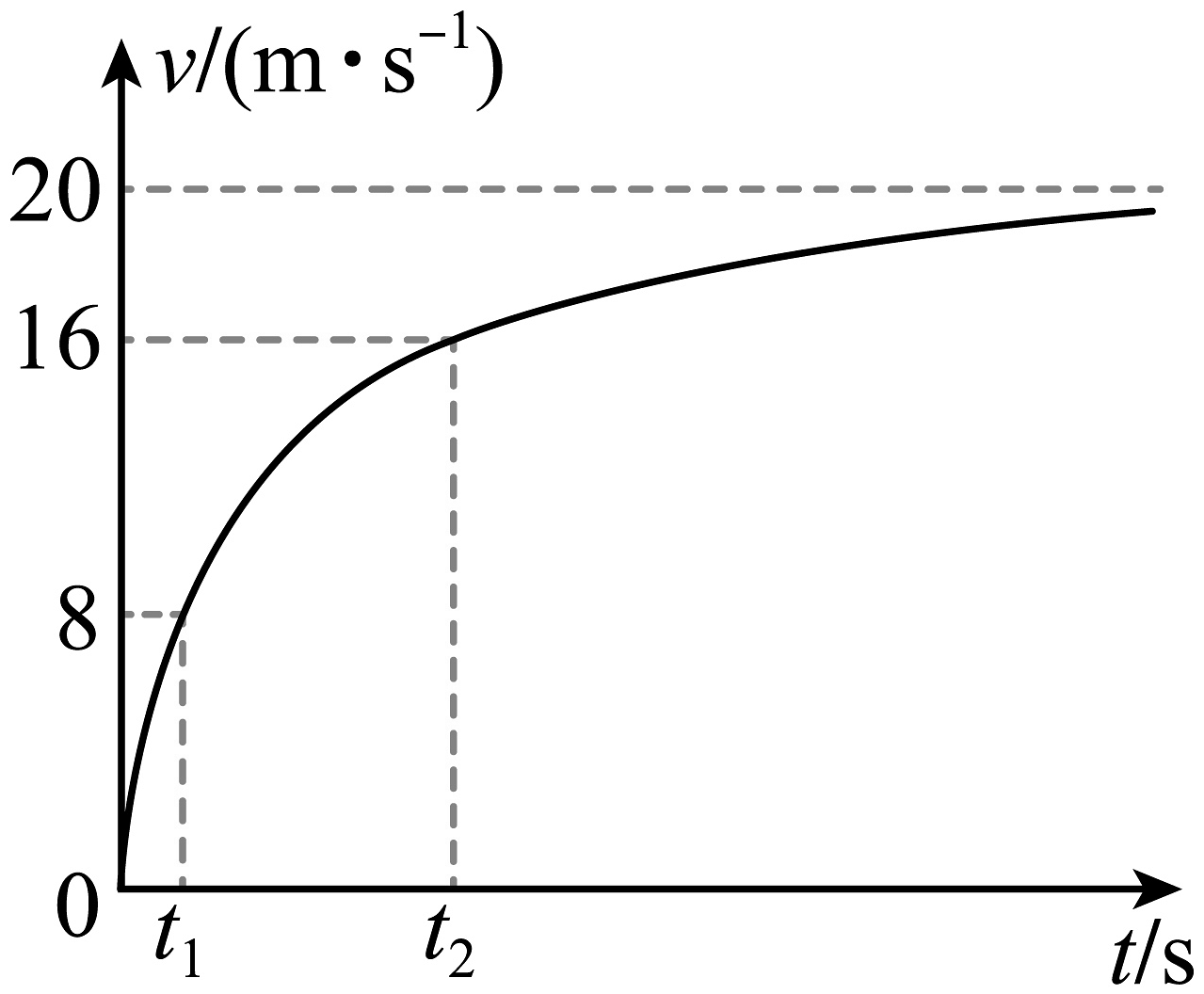 4、甲、乙两辆相同的汽车,质量均为 , 发动机的额定功率为 , 在水平路面上匀速行驶的最大速度为20 m/s。甲车以额定功率从静止开始在水平路面上沿直线行驶,其运动的v—t图像如图所示,时汽车的速度为8 m/s,时汽车的速度为16 m/s。乙车以的加速度,从静止开始在水平路面上先做匀加速直线运动,当达到额定功率后,保持功率不变继续行驶。假设两车所受阻力相同且大小保持不变。下列说法正确的是( )A、甲车时刻加速度是时刻的两倍 B、甲车在时间内的位移为276 m C、乙车匀加速直线运动持续了20 s D、乙车从静止加速到16 m/s需要的时间为29 s